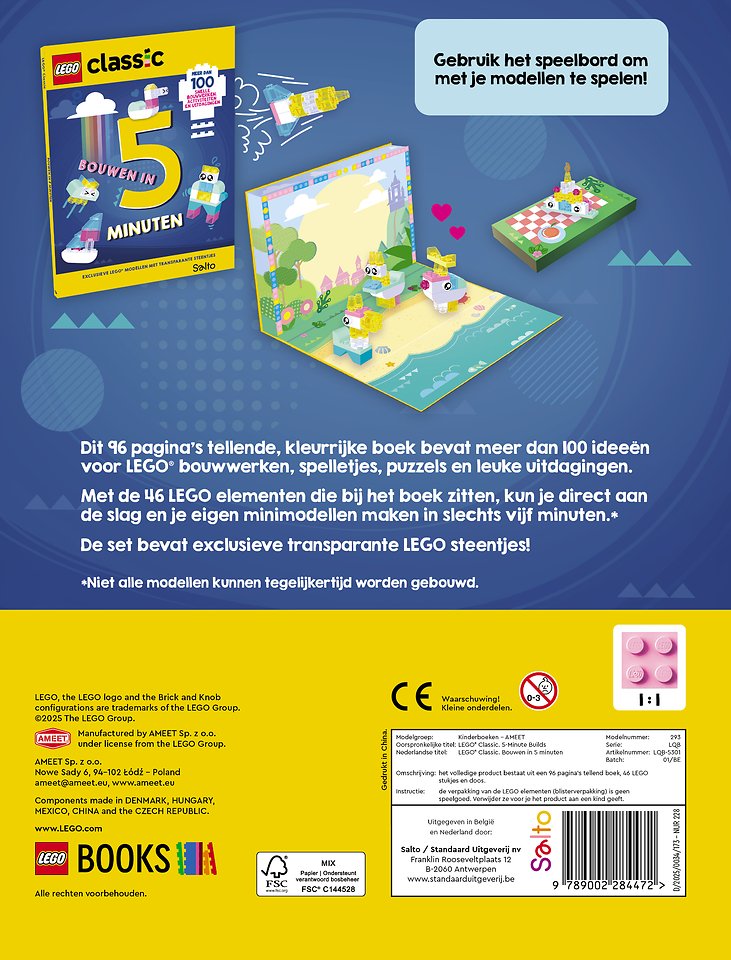 Met de 46 LEGO elementen die bij het boek zitten, kun je direct aan de slag en je eigen minimodellen maken in slechts vijf minuten.