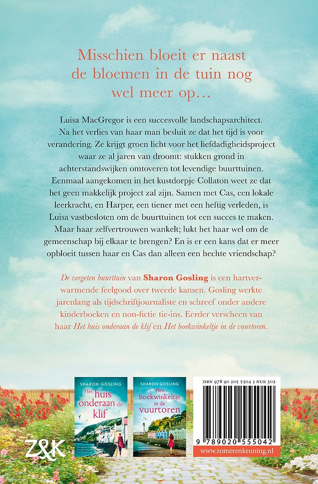 'De vergeten buurttuin' van Sharon Gosling vertelt het verhaal van Luisa MacGregor, een succesvolle landschapsarchitect. Zij heeft groen licht gekregen voor het liefdadigheidsproject waar ze al jaren van droomt: stukken grond in achterstandswijken omtoveren tot levendige buurttuinen. Ze is vastbesloten om samen met Cas, een lokale leerkracht, en Harper, een tiener met een heftig verleden, de buurttuinen tot een succes te maken. Maar haar zelfvertrouwen wankelt; lukt het haar wel om de gemeenschap bij elkaar te