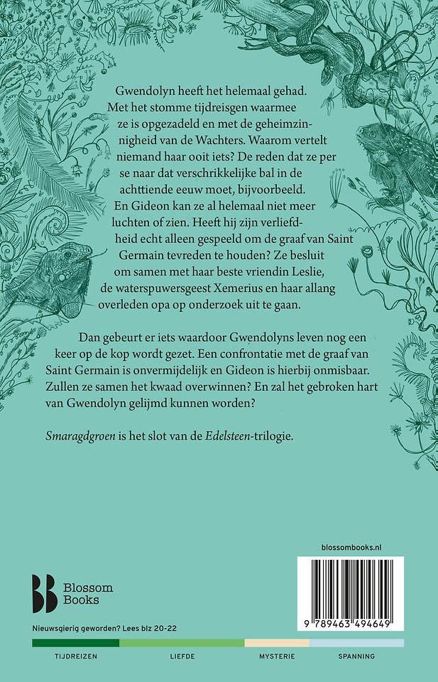 Smaragdgroen is de opvolger van Saffierblauw en Robijnrood. De trouwe Edelsteentrilogie-fans kunnen niet wachten op dit derde en laatste deel van deze megasuccesvolle serie. De Edelsteentrilogie heeft inmiddels een actieve en hechte fanbase en er komen nog elke dag nieuwe fans bij.