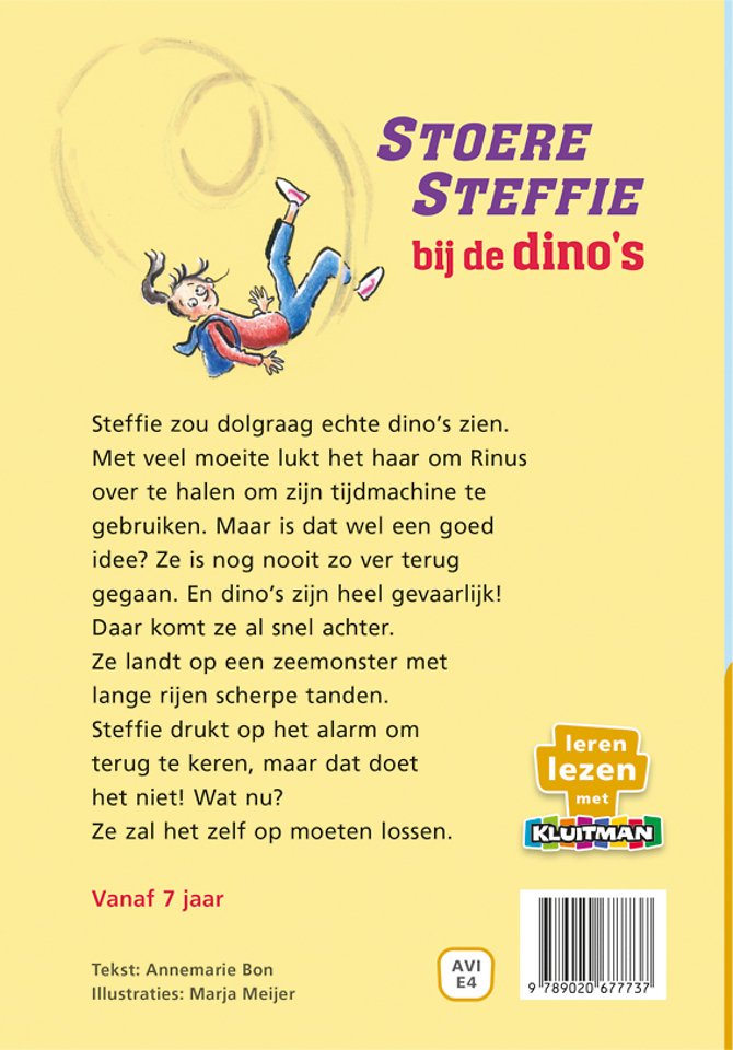 Steffie reist weer terug in de tijd, en deze keer gaat ze veel verder! Ze wil wel eens een dino in het echt zien. Maar de dino’s zijn niet allemaal vriendelijk en Steffie weet maar net te ontkomen. Alleen heeft ze dan per ongeluk een ei meegenomen. En als dat ei uitkomt, blijkt er wel een héél groot beest in te zitten. Daar hebben ze toch helemaal geen plek voor!