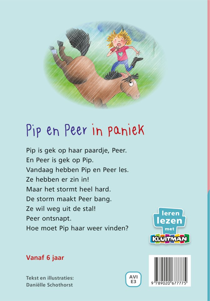 Vandaag is er geen paardrijles voor Pip en Peer, want het stormt hard. Alle paarden moeten binnen blijven. Maar Peer is bang en ontsnapt naar buiten. Kan Pip haar paard weer terugvinden?