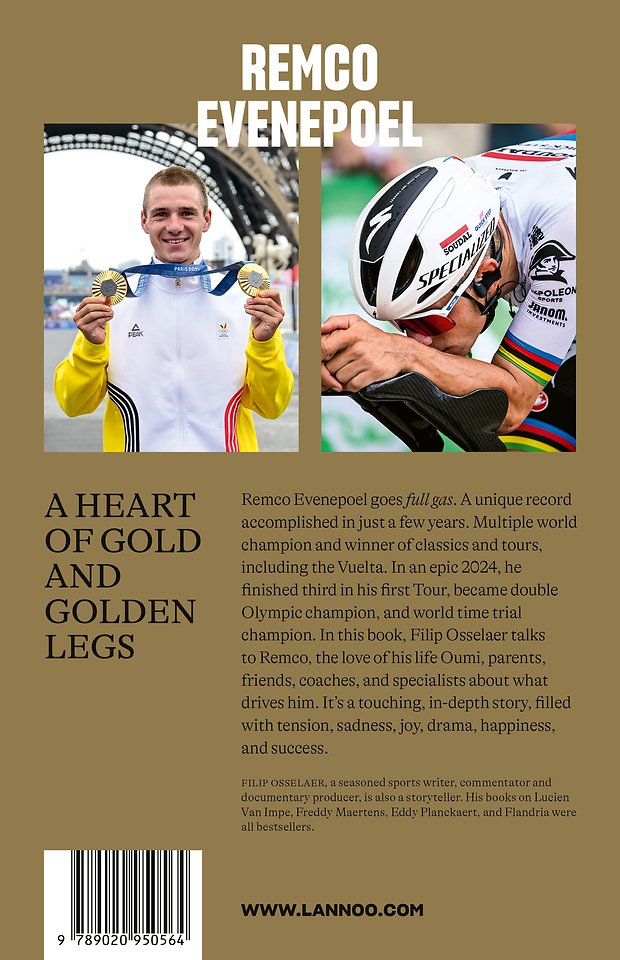 In this book, Filip Osselaer talks to Remco, the love of his life Oumi, parents, friends, coaches and specialists about what drives him. It's a touching, in-depth story, filled with tension, sadness, joy, drama, happiness, and success.