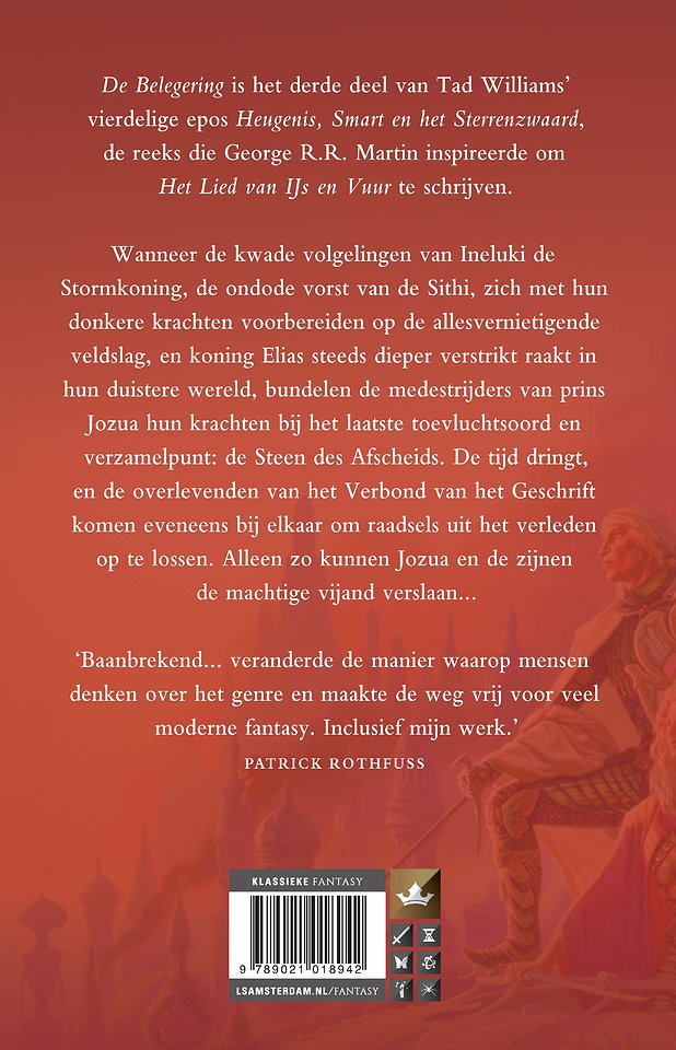 De Belegering is het derde boek van Tad Williams' vierdelige epos Heugenis, Smart en het Sterrenzwaard, de reeks die George R.R. Martin inspireerde om Het Lied van IJs en Vuur te schrijven.