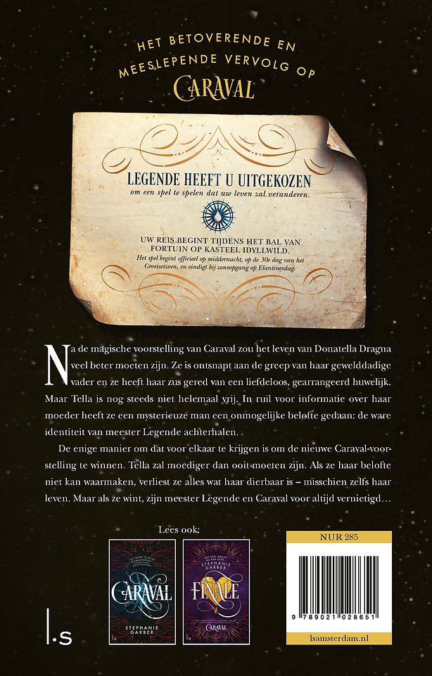 (POD) Meester Legende is het betoverende en meeslepende vervolg op de New York Times-bestseller Caraval van Stephanie Garber. Deze originele, romantische YA-fantasy met verrassende twist & turns houd je van begin tot eind aan je stoel gekluisterd!