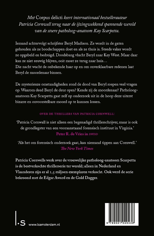 (POD) Corpus delicti is het tweede boek uit de bloedstollende bestsellerserie rond patholoog-anatoom Kay Scarpetta van auteur Patricia Cornwell. Deze serie, bestaande uit meer dan 20 bloedstollende crimethrillers, betekende Patricia Cornwells doorbraak als grondlegger van de pathologisch-anatomische thriller.