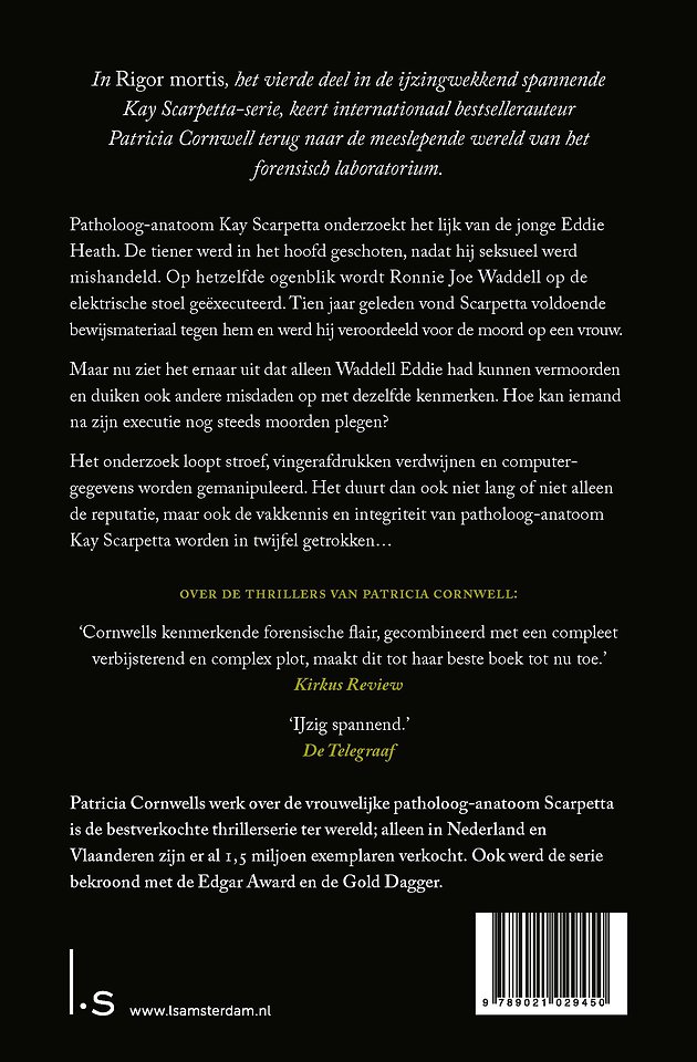 (POD) Rigor Mortis is het vierde uit de bloedstollende bestsellerserie rond patholoog-anatoom Kay Scarpetta van auteur Patricia Cornwell. Deze serie, bestaande uit meer dan 20 bloedstollende crimethrillers, betekende Patricia Cornwells doorbraak als grondlegger van de pathologisch-anatomische thriller.