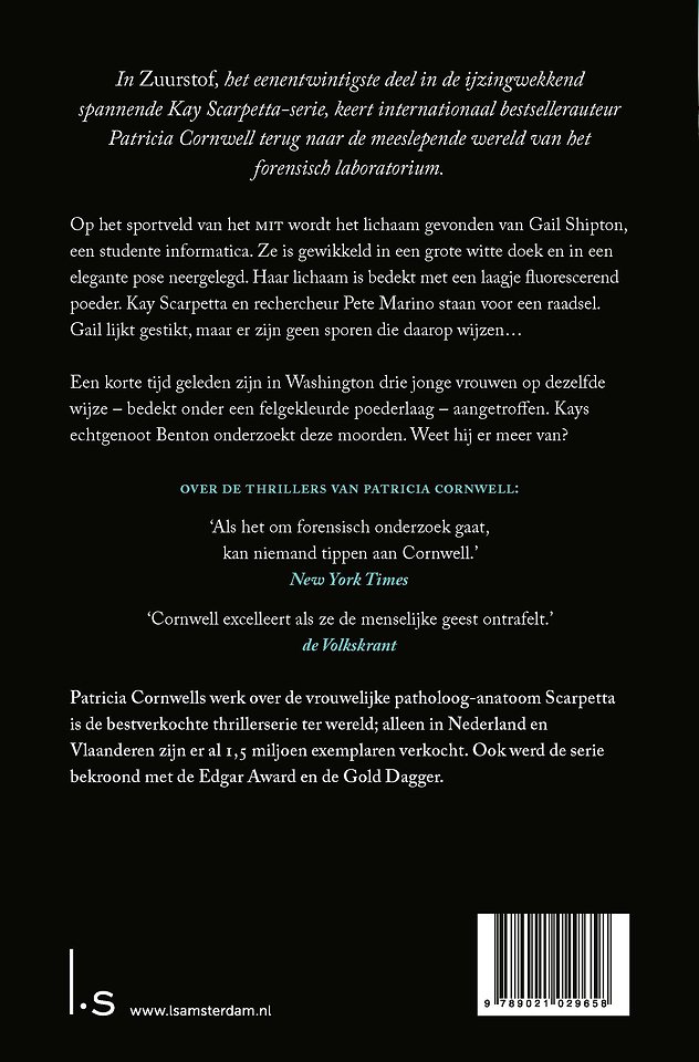(POD) Zuurstof is het eenentwintigste boek uit de bloedstollende bestsellerserie rond patholoog-anatoom Kay Scarpetta van auteur Patricia Cornwell. Deze serie betekende Patricia Cornwells doorbraak als grondlegger van de pathologisch-anatomische thriller.