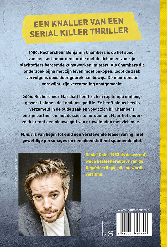 Daniel Cole keert met Mimic terug naar de wereld van zijn Ragdoll-serie, met een zenuwslopend nieuw verhaal over een seriemoordenaar die ’s werelds grootste kunstwerken nabootst… met de lichamen van zijn slachtoffers.