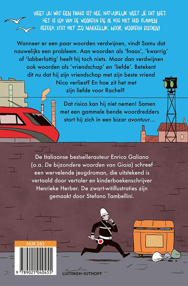Wanneer er een paar woorden verdwijnen, lijkt het Samu nauwelijks een probleem. Zolang het woorden als ‘knalpot’ en ‘labberlottig’ zijn, hoeft hij ze ook niet te leren. Maar dan verdwijnen ook woorden als ‘jam’, ‘vriendschap’ en ‘liefde’. Betekent dit nu dat hij zijn vriendschap met zijn beste vriend Nico verliest? En hoe zit het met zijn liefde voor Rachel? Dat risico kan hij niet nemen! Samen met een nogal gammele bende woordredders stort hij zich in een avontuur vol geheimen, gecodeerde berichten en zelfs mysterieuze ontvoeringen…