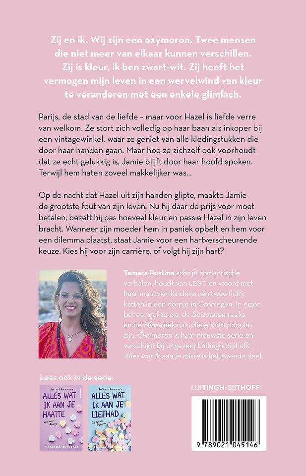 Alles wat ik aan je miste is het tweede deel in de romantische serie Oxymoron van auteur Tamara Postma.