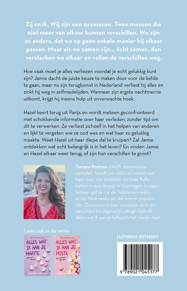 Alles wat ik aan je liefhad is het derde deel in de romantische serie Oxymoron van auteur Tamara Postma.