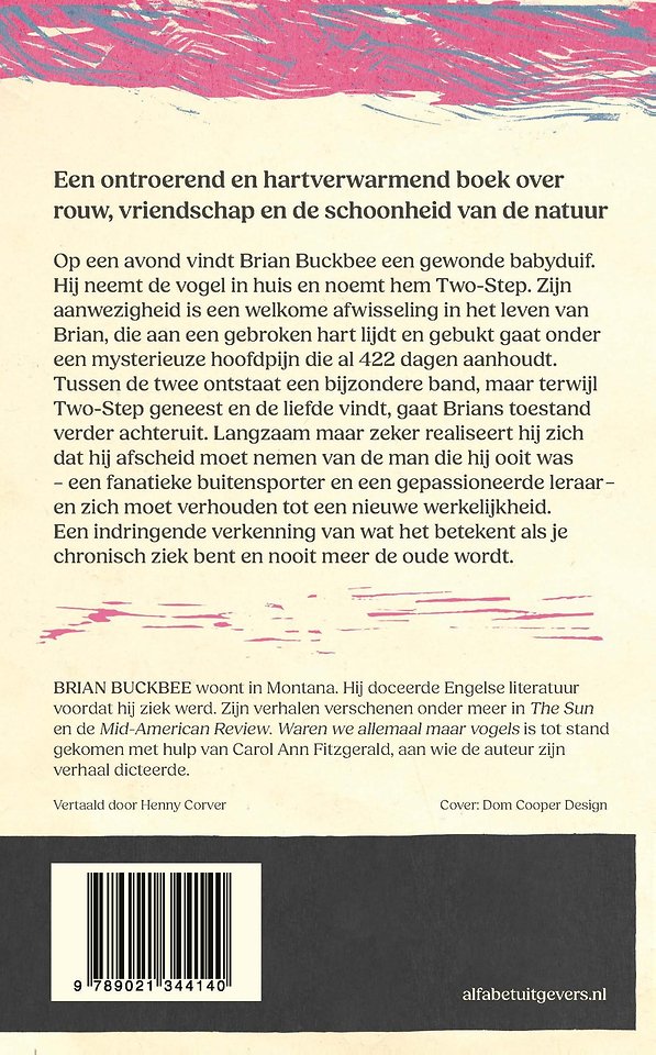 Op een avond vindt Brian Buckbee een gewonde babyduif. Hij neemt de vogel in huis en noemt hem Two-Step. Zijn aanwezigheid is een welkome afwisseling in het leven van Brian, die aan een gebroken hart lijdt en gebukt gaat onder een mysterieuze hoofdpijn die al 422 dagen aanhoudt. Tussen de twee ontstaat een bijzondere band, maar terwijl Two-Step geneest en de liefde vindt, gaat Brians toestand verder achteruit. Langzaam maar zeker realiseert hij zich dat hij afscheid moet nemen van de man die hij ooit was – een fanatieke buitensporter en een gepassioneerd leraar – en zich moet verhouden tot een nieuwe werkelijkheid. Waren we allemaal maar vogels is een indringende verkenning van wat het betekent als je chronisch ziek bent en nooit meer de oude wordt. Een ontroerend en tegelijkertijd hartverwarmend boek over rouw, vriendschap, hoop en de schoonheid van de natuur.
