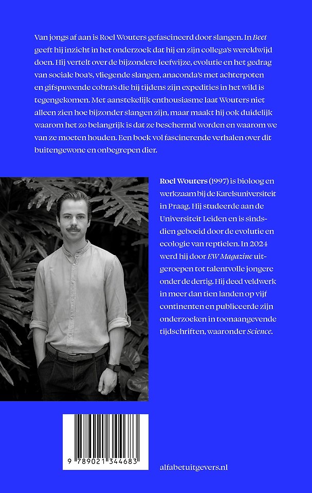 Van jongs af aan is Roel Wouters gefascineerd door slangen. In Beet geeft hij inzicht in het onderzoek dat hij en zijn collega’s wereldwijd doen en vertelt hij over de bijzondere leefwijze, evolutie en het gedrag van sociale boa’s, vliegende slangen, anaconda’s met achterpoten en gifspuwende cobra’s die hij tijdens zijn expedities in het wild is tegengekomen. Met aanstekelijk enthousiasme laat Wouters niet alleen zien hoe bijzonder slangen zijn, maar maakt hij ook duidelijk waarom het zo belangrijk is dat ze beschermd worden en waarom we van ze moeten houden. Een boek vol fascinerende verhalen over dit buitengewone en onbegrepen dier.