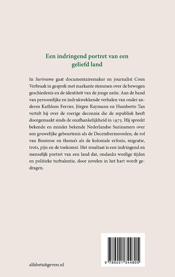 In Suriname. Een roerige geschiedenis gaat documentairemaker en journalist Coen Verbraak in gesprek met markante stemmen over de bewogen geschiedenis en de identiteit van een jonge natie. Aan de hand van persoonlijke verhalen van onder anderen Kathleen Ferrier, Jörgen Raymann en Humberto Tan vertelt hij over de roerige decennia die de republiek heeft doorgemaakt sinds de onafhankelijkheid in 1975. Hij spreekt bekende en minder bekende Nederlandse Surinamers over een gruwelijke gebeurtenis als de Decembermoorden, de rol van Bouterse en thema’s als de koloniale erfenis, migratie, trots, pijn en de toekomst. Het resultaat is een indringend en menselijk portret van een land dat, ondanks woelige tijden en politieke turbulentie, door zovelen in het hart wordt gedragen.