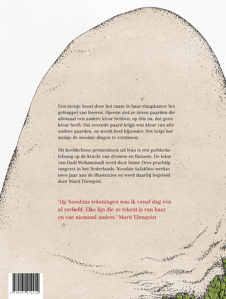 Een meisje ligt in bed. Het raam in haar kamer staat open. Ze luistert naar hoefgetrappel. Opeens ziet ze zeven paarden die allemaal een andere kleur hebben, op één paard na, dat geen kleur heeft. Alle paarden staan een deel van hun kleur aan het kleurloze paard af. En dit blijkt heel bijzondere gevolgen te hebben.