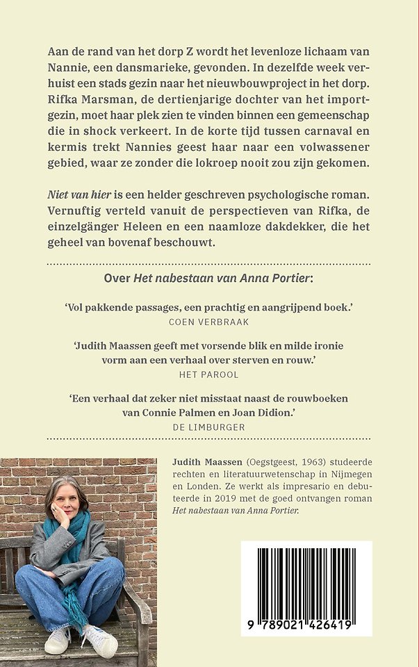 Niet van hier is een helder geschreven psychologische roman. Vernuftig verteld vanuit de perspectieven van Rifka, de einzelgänger Heleen en een naamloze dakdekker, die het geheel van bovenaf beschouwt.