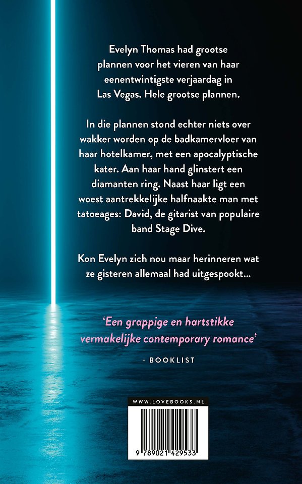 In die plannen stond echter niets over wakker worden op de badkamervloer van haar hotelkamer, met een apocalyptische kater. Aan haar hand glinstert een diamanten ring. Naast haar ligt een woest aantrekkelijke halfnaakte man met tatoeages: David, de gitarist van populaire band Stage Dive.