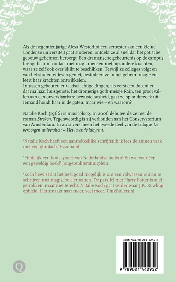 Als de negentienjarige Alexa Westerhof een semester aan een kleine Londense universiteit gaat studeren, ontdekt ze al snel dat het gotische gebouw geheimen herbergt, geheimen die ook haar leven voorgoed zullen veranderen. Een dramatische gebeurtenis op de campus brengt haar in contact met magi, mensen met bijzondere krachten, waar ze zelf ook over blijkt te beschikken. Terwijl ze colleges volgt en van het studentenleven geniet, bestudeert ze in het geheim magie en leert haar krachten ontwikkelen. Ze ontdekt dat Londen vol geheime plekken zit, van verborgen kelders en kroegen tot spookmetrostations, en het wordt haar vooral duidelijk dat ze tegenover de buitenwereld niets mag loslaten over deze wereld.