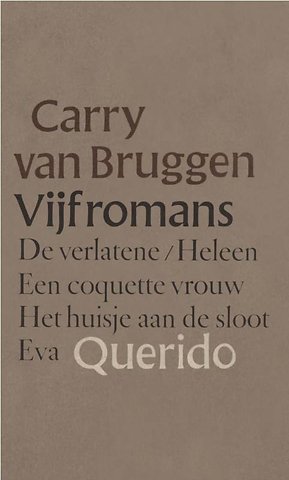 Twee boeken van Carry van Bruggen is dat lot bespaard gebleven, maar dat zijn dan ook geen romans, laat staan damesromans: de grote essays Prometheus en Hedendaags fetischisme. Prometheus was zelfs lange tijd het lijfboek van dé intellectueel van de jaren dertig: Menno ter Braak. Prometheus grote faam heeft tot de misvatting geleid dat in dát boek de ware Carry van Bruggen te vinden zou zijn. Maar het zijn juist haar romans, waarin ze zich het minst verhuld heeft uitgesproken over zichzelf, en daarmee over het leven van de vrouw van haar tijd. Ze beschrijft haar jeugd, zoals in Het huisje aan de sloot (ze was afkomstig uit de Zaanstreek), ze heeft het over haar leven als joods meisje uit een vroom en kleinburgerlijk milieu, compleet met `kleinheidswaan , in De verlatene en in Heleen, en ze is al even openhartig over haar leven als lid van de `tweede kunne in Een coquette vrouw en in Eva, haar meesterwerk. De vijf genoemde titels vormen, maar dan in chronologische volgorde, de inhoud van Vijf romans. Een representatieve keuze, naar geschakeerdheid, als beeld van de schrijfster en van de vrouw van het begin van de vorige eeuw, en naar kwaliteit.