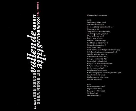 Ter gelegenheid van zijn vijfentachtigste verjaardag maakte Gerrit Kouwenaar een keuze uit zijn eigen werk. Het resultaat is een kloeke bundel: een selectie van de gedichten die volgens de dichter zelf de kern uitmaken van zijn inmiddels bijn zestigjarig dichterschap.