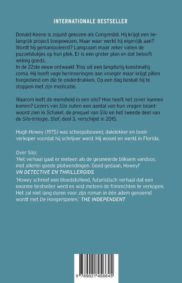 Lezers van Silo zullen in Schakel een aantal vragen beantwoord zien. Waarom leeft de mensheid in een silo? Wie zit er achter dit plan? De antwoorden zijn te vinden in deze spannende en beklemmende roman. Dit deel is ook goed los van Silo te lezen.