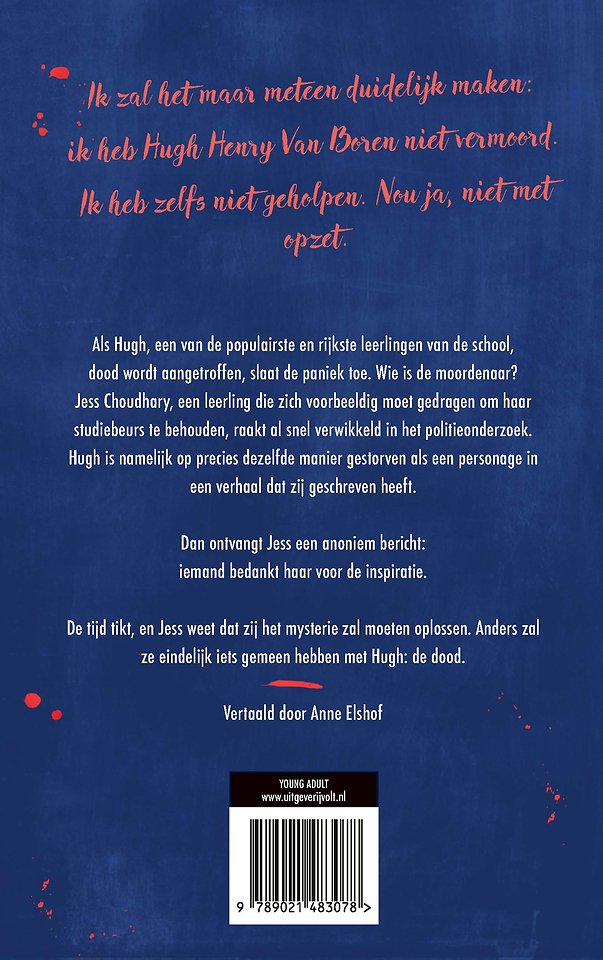 Als Hugh, een van de populairste en rijkste leerlingen van de school, dood wordt aangetroffen, slaat de paniek toe onder de anderen. Wie is de moordenaar? Jess Choudhary, een leerling die er alles aan doet om zich voorbeeldig te gedragen en zo haar studiebeurs veilig te stellen, merkt al snel dat dat ze meer betrokken is bij het onderzoek dan ze ooit had kunnen denken. Hugh is op precies dezelfde manier overleden als een personage in een verhaal dat zij geschreven heeft. Dan ontvangt Jess een anoniem bericht: iemand bedankt haar voor de inspiratie.
