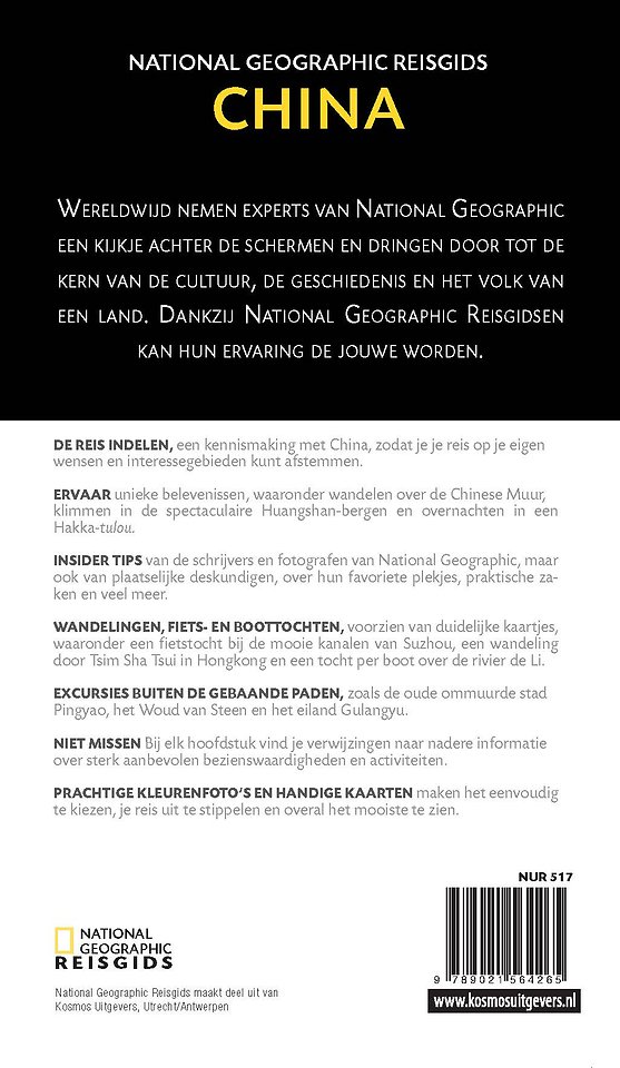National Geographic Reisgids China is een exclusieve gids met sublieme fotografie die u meeneemt naar de bekende en minder bekende bezienswaardigheden. De experts van National Geographic nemen een kijkje achter de schermen en dringen door tot de kern van de cultuur, de geschiedenis en het volk van het land.