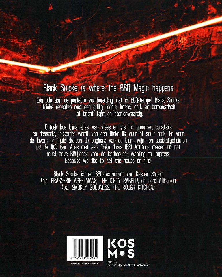Écht indruk maken met de BBQ? Dan is special edition BBQ boek Black Smoke van Jord Althuizen en Kasper Stuart hét boek voor jou. Naast blow-your- socks-off recepten voor grill of smoker, ook award winning cocktails van Belgiums Best Bartenders, een goede dosis Tasty Travels en alle need-to-knows om thuis te vlammen. Het perfecte cadeau voor de slightly show-off BBQ'er met ambitie. Powered by Smokey Goodness.