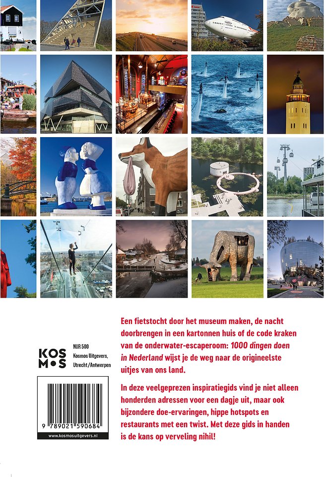 Met '1000 dingen doen in Nederland' ontdek je ons land op z’n leukst! Dit heerlijke inspiratieboek van Jeroen van der Spek staat barstensvol originele uitjes in eigen land – van museumbezoek tot avontuurlijke activiteiten en van funshoppen tot coole uitstapjes met kids. Overzichtelijk gerangschikt per provincie en afgewisseld met top 10-lijstjes van filmlocaties, natuurgebieden en de mooiste terrassen… Een must-have voor iedereen die er graag op uitgaat.