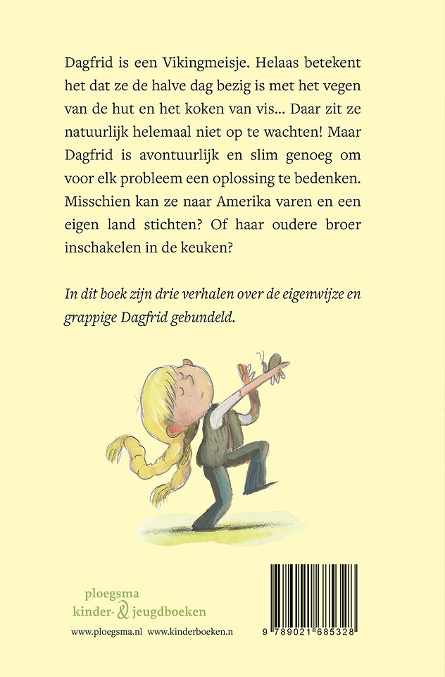 Dagfrid is een Vikingmeisje. Helaas betekent dat dat ze een lange jurk moet dragen waarin ze niet kan rennen. En dat ze de halve dag bezig is met het schoonvegen van de hut en het koken van vis... Daar zit ze natuurlijk helemaal niet op te wachten! Maar Dagfrid is avontuurlijk en slim genoeg om voor elk probleem een oplossing te bedenken. Misschien kan ze naar Amerika varen en een eigen land stichten? Of haar oudere broer inschakelen in de keuken?