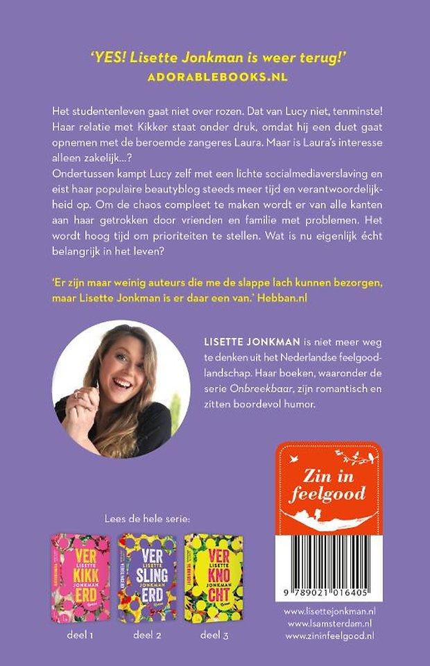 Lisette Jonkman is terug! Verslingerd is net als Verkikkerd een heerlijke feelgoodroman over beautyblogger Lucy, vol met nerds, humor en een goede dosis romantiek.