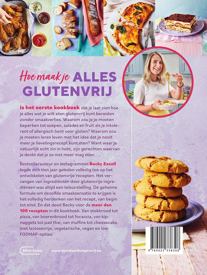 Bestsellerauteur en instagrammer Becky Excell legde zich tien jaar geleden volledig toe op het ontwikkelen van glutenvrije recepten. Het vervangen van ingrediënten door glutenvrije ingrediënten was altijd een teleurstelling. Dé geheime formule om dezelfde smaaksensatie te krijgen is het volledig her denken van het recept, van begin tot eind. En dat deed Becky voor de meer dan 100 recepten in dit kookboek. Van stokbrood tot pizza, van boerenbrood tot focaccia, van kipnuggets tot pad thai, van muffins tot cheesecake, met lactosevrije, vegetarische, vegan en low FODMAP-opties.
