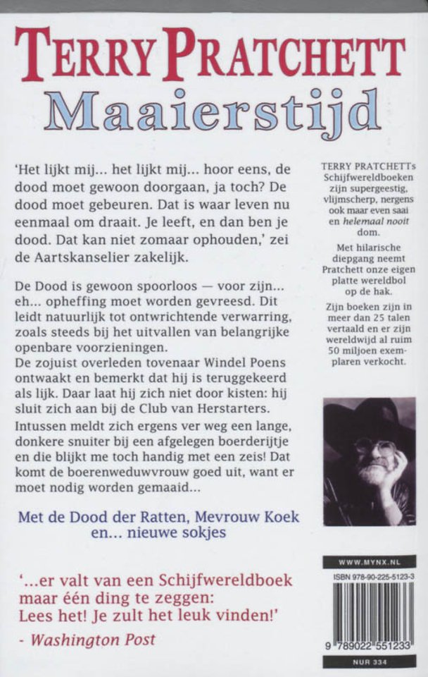 De zojuist overleden tovenaar Windel Poens ontwaakt en bemerkt dat hij is teruggekeerd als lijk. Daar laat hij zich niet door kisten: hij sluit zich aan bij de Club van Herstarters. Intussen meldt zich ergens ver weg een lange, donkere snuiter bij een afgelegen boerderijtje en die blijkt me toch handig met een zeis! Dat komt de boerenweduwvrouw goed uit, want er moet nodig worden gemaaid…