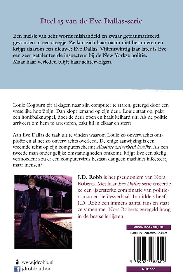 Eve Dallas probeert uit te zoeken waarom de man zo onverklaarbaar ontplofte en vervolgens net zo onverklaarbaar stierf, maar ze krijgt geen enkele aanwijzing, behalve een pop-up op het beeldscherm van de dode met de woorden: ‘Absolute zuiverheid bereikt’. Pas als een tweede man onder vrijwel dezelfde omstandigheden omkomt, krijgt ze een akelig vermoeden: zou het kunnen dat er een computervirus bestaat dat overdraagbaar is van machine naar mens?