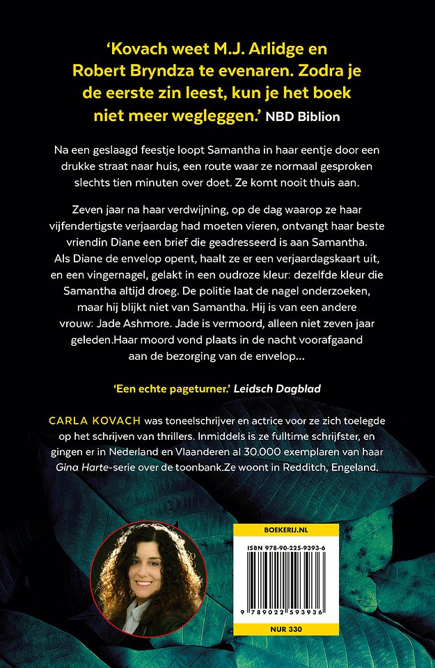 Zeven jaar na haar verdwijning, op de dag waarop ze haar drieëndertigste verjaardag had moeten vieren, ontvangt haar beste vriendin Diane een brief die geadresseerd is aan Samantha. Als Diane de envelop opent, haalt ze er een verjaardagskaart uit, en een vingernagel, gelakt in een oudroze kleur: dezelfde kleur die Samantha altijd droeg. De politie laat de nagel onderzoeken, maar hij blijkt niet van Samantha. Hij is van een andere vrouw: Jade Ashmore. Jade is vermoord, alleen niet zeven jaar geleden. Haar moord vond plaats in de nacht voorafgaand aan de bezorging van de envelop…
