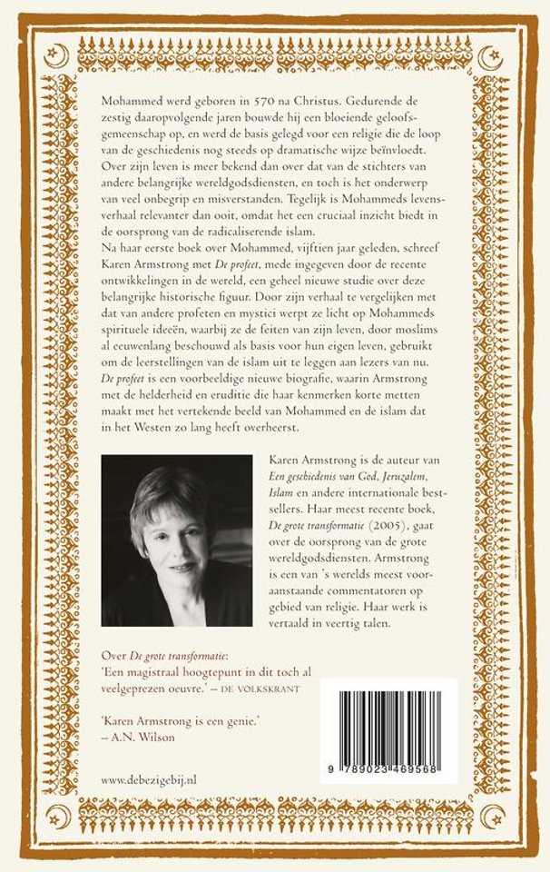 Met alle helderheid, eruditie en inzicht die haar kenmerken schreef Karen Armstrong met De profeet een voorbeeldige nieuwe biografie, waarin na eeuwen van misvattingen korte metten wordt gemaakt met het vertekende beeld dat de westerse opinie over de islam én op de man in het hart ervan zo lang domineerde.