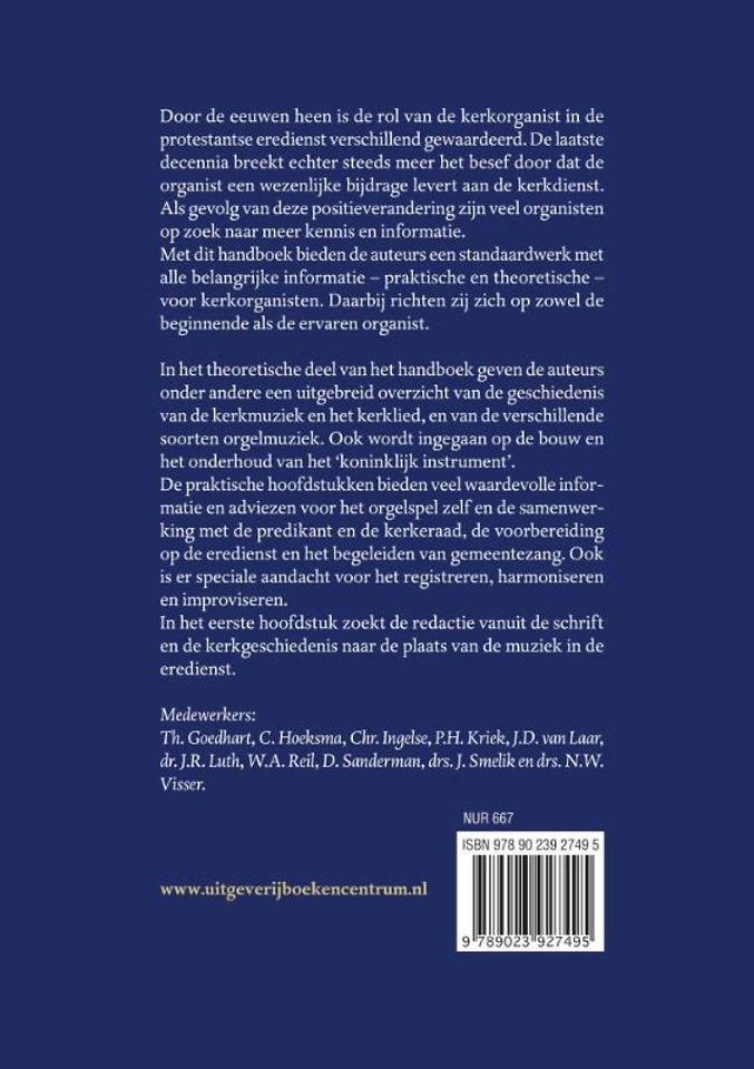 Door de eeuwen heen is de rol van de kerkorganist in de protestantse eredienst verschillend gewaardeerd. De laatste decennia breekt echter steeds meer het besef door dat de organist een wezenlijke bijdrage levert aan de kerkdienst. Als gevolg van deze positieverandering zijn veel organisten op zoek naar meer kennis en informatie. Met dit handboek bieden de auteurs een standaardwerk met alle belangrijke informatie praktische en theoretische voor kerkorganisten. Daarbij richten zij zich op zowel de beginnende als de ervaren organisten.