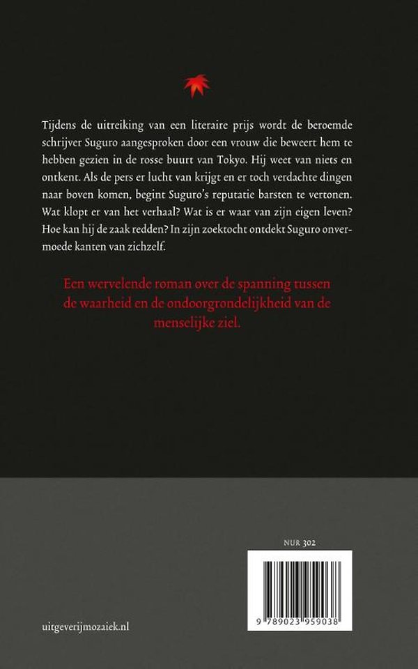 Het schandaal van Shusako Endo is een psychologische roman over de spanning tussen waarheid en de ondoorgrondelijkheid van de menselijke ziel. Een zoektocht naar het ware zelfbeeld. Tijdens de uitreiking van een literaire prijs wordt de schrijver Suguro aangesproken door een vrouw, die beweert hem te hebben gezien in de rosse buurt van Tokyo. De pers krijgt er lucht van en Suguro’s reputatie begint al snel barsten te vertonen. Wat klopt er van het verhaal? Hoe kan hij de zaak redden? In zijn zoektocht ontdekt Sugaro onvermoede kanten van zichzelf. ‘Het schandaal’ is een wervelende roman over goed en kwaad in de mens.