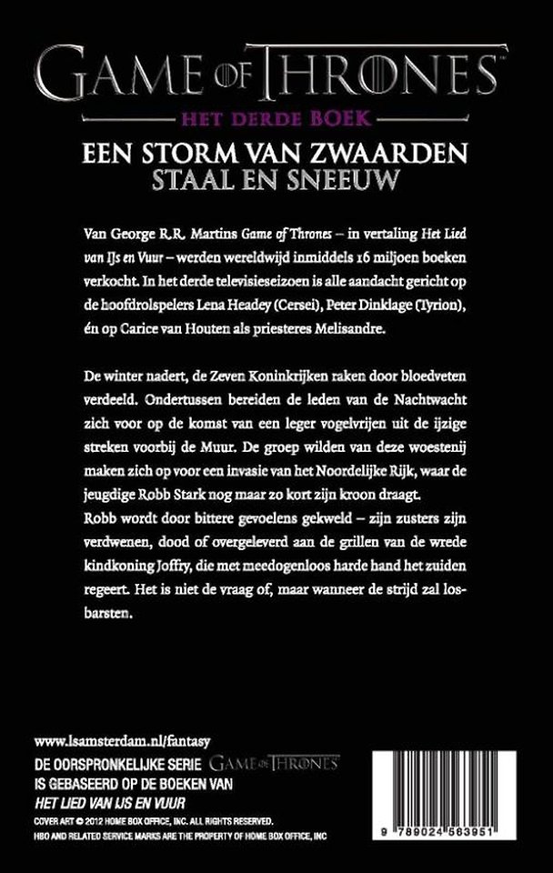 ...in de ijzige streken voorbij de Muur, komt een leger van vogelvrijen bijeen. Zij beschikken over de wilde magie van deze ijswoestenij en maken zich op voor een invasie van het Noordelijke Rijk, waar de jeugdige Robb Stark nog maar zo kort zijn kroon draagt.