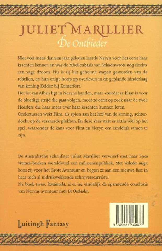 De Australische schrijfster Juliet Marillier verwierf met haar Zeven Wateren-boeken wereldwijd een miljoenenpubliek. Met Verboden magie koos zij voor het Grote Avontuur en begon ze aan een nieuwe fase in haar toch al indrukwekkende schrijverscarrière. Na Ravenvlucht, is er nu eindelijk de spannende conclusie van Neryns avontuur met De Ontbieder.