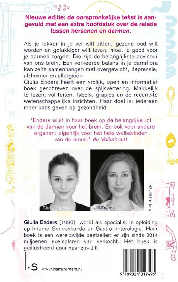 'Enders wijst in haar boek op de belangrijke rol van de darmen voor het brein. En ook voor andere organen; eigenlijk voor het hele welbevinden van de mens.' de Volkskrant Giulia Enders (1990) heeft haar studie geneeskunde bijna afgerond.