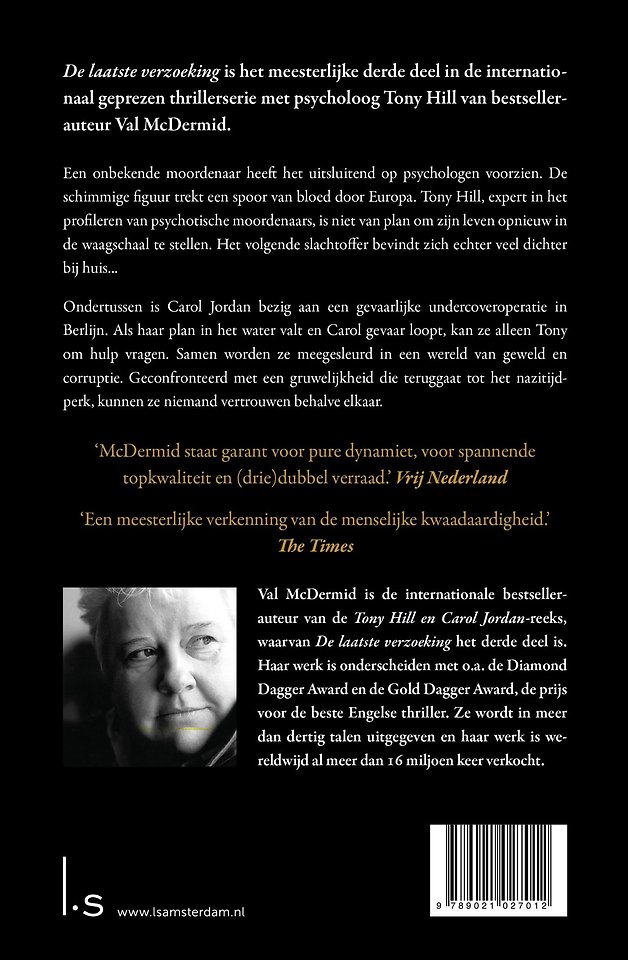 In De laatste verzoeking, het derde deel van Val McDermids bekroonde thrillerserie over Tony Hill en Carol Jordan, heeft een onbekende seriemoordenaar het uitsluitend op psychologen voorzien. De schimmige figuur trekt een spoor van bloed door Europa.