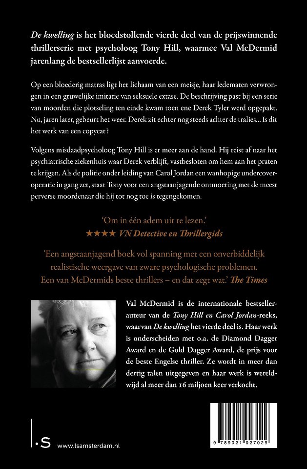 In De kwelling, deel vier uit Val McDermids bekroonde Tony Hill en Carol Jordan-reeks, wordt een moord gepleegd die erg lijkt op het werk van seriemoordenaar Derek Tyler. Maar Tyler is jaren geleden opgepakt. Lukt het Tony en Carol de zaak op te lossen?