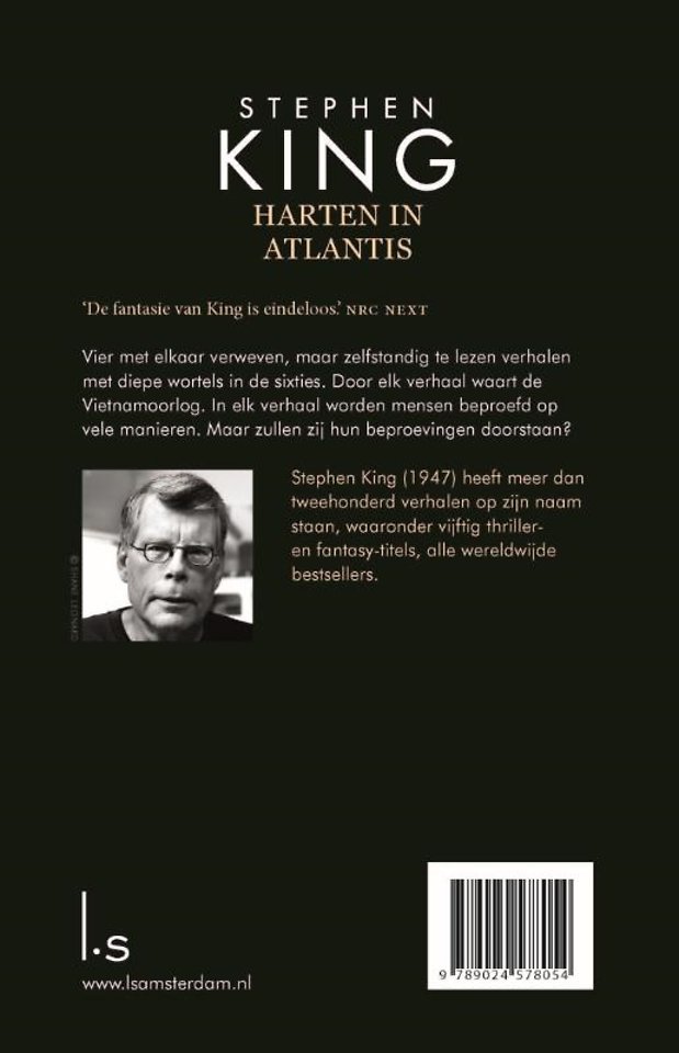 Aan de hand van vijf met elkaar verweven verhalen (twee novellen en drie korte verhalen) ontsluit bestsellerauteur Stephen King in Harten in Atlantis de geheimen van de boomer-generatie.