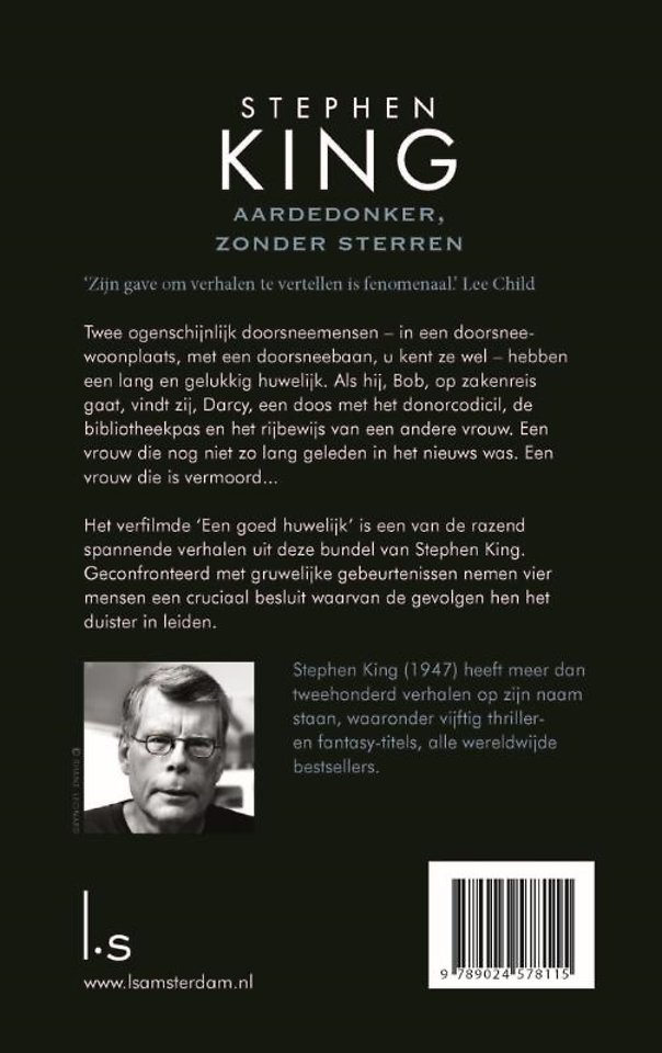 Aardedonker, zonder sterren bevat vier intense verhalen van meesterverteller Stephen King.