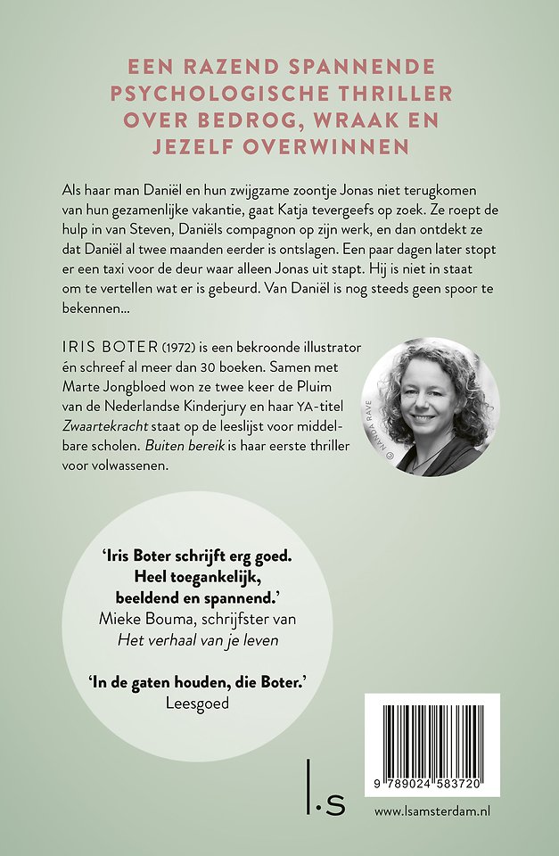 Buiten bereik van Iris Boter is een razend spannende psychologische thriller over bedrog, wraak en jezelf overwinnen.