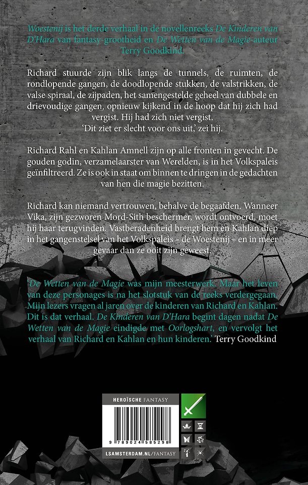 Woestenij is het derde verhaal in de novellenreeks De Kinderen van D’Hara van De Wetten van de Magie-auteur Terry Goodkind.