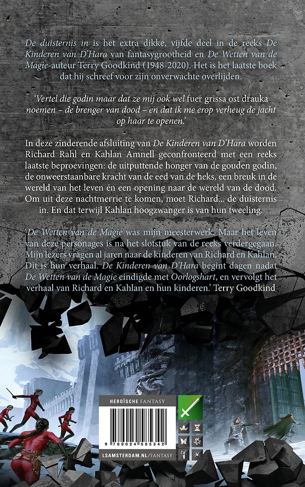 Deze zinderende afsluiting van De Kinderen van D’Hara is het laatste boek dat Goodkind schreef voor zijn onverwachte overlijden in september 2020. Richard Rahl en Kahlan Amnell worden geconfronteerd met een laatste beproeving. Een breuk in de wereld van het leven. Een opening naar de wereld van de dood. Om deze apocalyptische nachtmerrie onder ogen te komen, moet Richard... de duisternis in.
