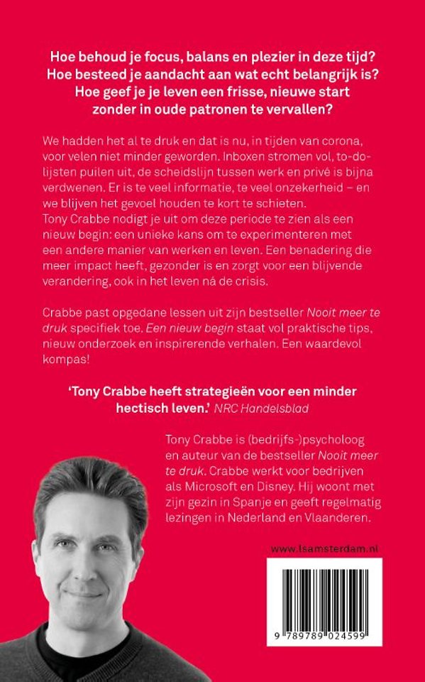 Crabbe is (bedrijfs-)psycholoog en auteur van de bestseller Nooit meer te druk. In korte tijd schreef hij dit nieuwe boek voor iedereen die moeite heeft om deze nieuwe situatie het hoofd te bieden.
