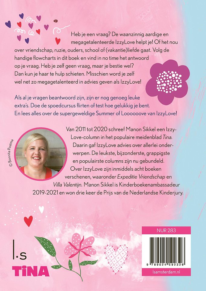 Van 2011 tot 2020 schreef Manon Sikkel een IzzyLove-column in het populaire meidenblad Tina. Daarin gaf IzzyLove advies aan jonge meiden over allerlei onderwerpen. De leukste, bijzonderste, grappigste en populairste columns zijn nu gebundeld. Over IzzyLove verschenen eerder o.a. Expeditie Vriendschap en Villa Valentijn.